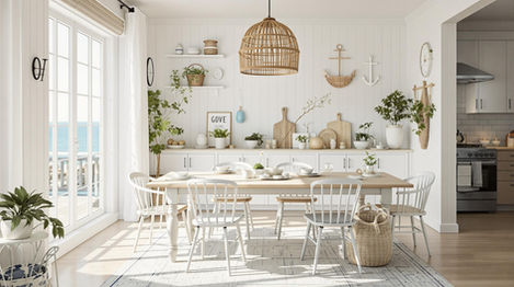 A photo series highlighting the breezy, light-filled design of a coastal vacation home. Featuring soft tones, large windows, and airy interiors, this project showcases a tranquil and rejuvenating environment inspired by oceanfront living.